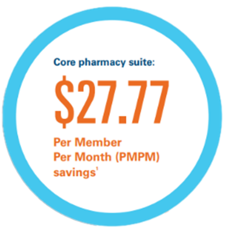 Together, these five strategies make up our core pharmacy suite, which helps employers save an average of $27.77 PMPM2. Want to explore cost-saving opportunities for your organization? Explore our core pharmacy suite brochure or contact your account representative today.